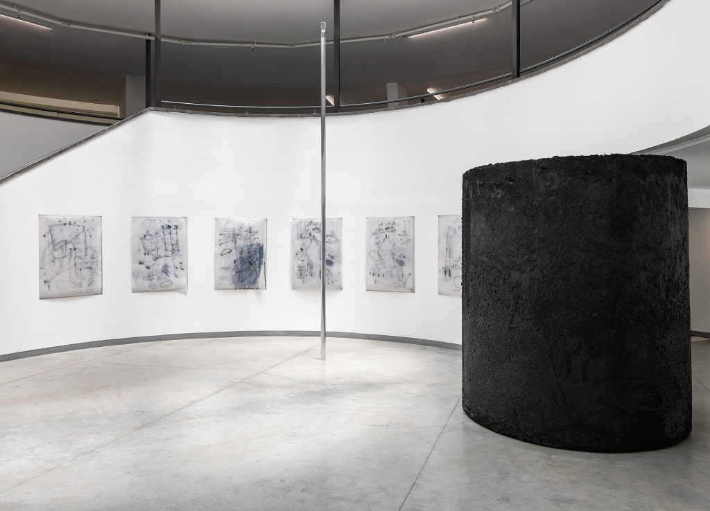 I thought about a vase as an archetype for a vessel, and I created one from unburned black clay. I wanted to expand the vase by rubbing it against the museum’s walls so that the friction creates a drawing of a trembling line. I’ve completed a full round with the vase of the spherical structure of the Bat Yam Museum of Art. One line was enough. The vase remained intact except for the marks the friction against the wall left.