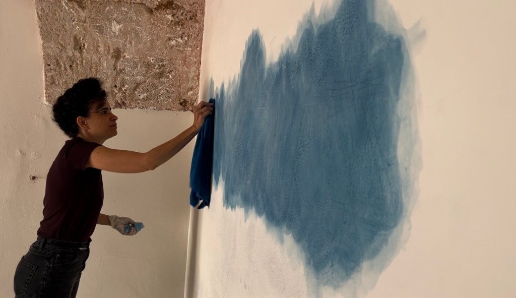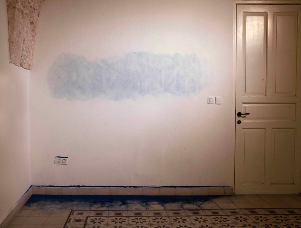 The Kohl was used as eye makeup and protection against the evil eye; later, it was discovered as blinding and poisonous. These two stories are woven into one work in which I repeatedly write the same sentence that poisoned my soul until the stone wears away. Then I erase the inscription, which becomes an abstract painting, the crumbs of the Kohl lay beneath. I arrived at the gallery regularly to continue erasing the stain, as a ritual act that seeks to exorcise a demon.
