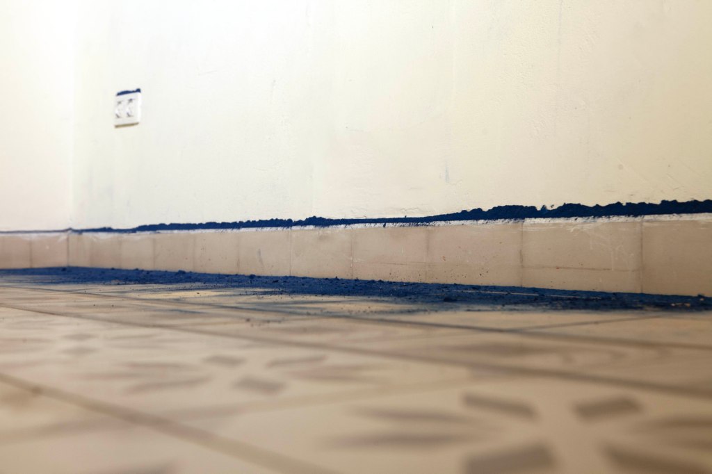Poisoned Consciousness (Death to the Arabs), Writing and Erasing, Kohl Stone from Casablanca (“White House,” my mother’s hometown) on a white wall, 2024
